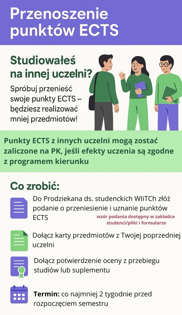 Przenoszenie i uznanie punktów ECTS – informacja dla studentów WIiTCh